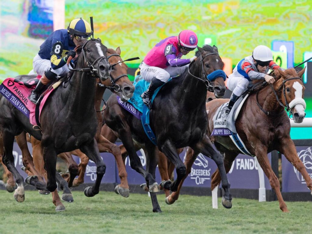 Saudi Crown ingresaba en la recta con ventaja peligrosa de casi 3 cuerpos sobre Magic Tap e Il Miracolo que un tanto agotados buscaban la parte interna de la pista, la más dañada por las lluvias; Dreamlike enserió su avance con Irad Ortiz por la parte central e intentaba descontar la ventaja, sin embargo, Geroux apelando a todos sus recursos logró mantener a Saudi Crown medio cuerpo al frente del potro de Pletcher cruzando el espejo en 1:50.62 con remate de 12.63 para el último furlong.